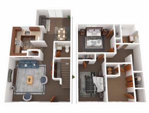 What a nice home! The open concept living/dining area is in the front of the home, with the kitchen/breakfast nook area to the back.The U shaped kitchen maximizes counterspace and opens on to the patio. A powder room, separate laundry with washer/dryer hook-ups, and closet complete the main floor. Upstairs, you'll find two bedrooms, a linen closet, and a full bath. There's also exterior bulk storage off the patio.